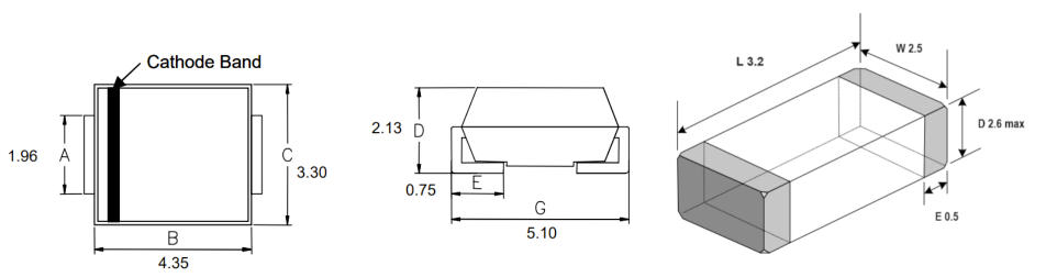 下圖是貼片壓敏電阻對TVS替代的尺寸圖,從圖上可以看出,用高能貼片壓敏電阻能大大的節省布線空間, 因為是一顆高能貼片壓敏電阻對三顆TVS管的替代,體積縮小為原先的1/10不到,而通流也至少是5倍TVS的通流以上。