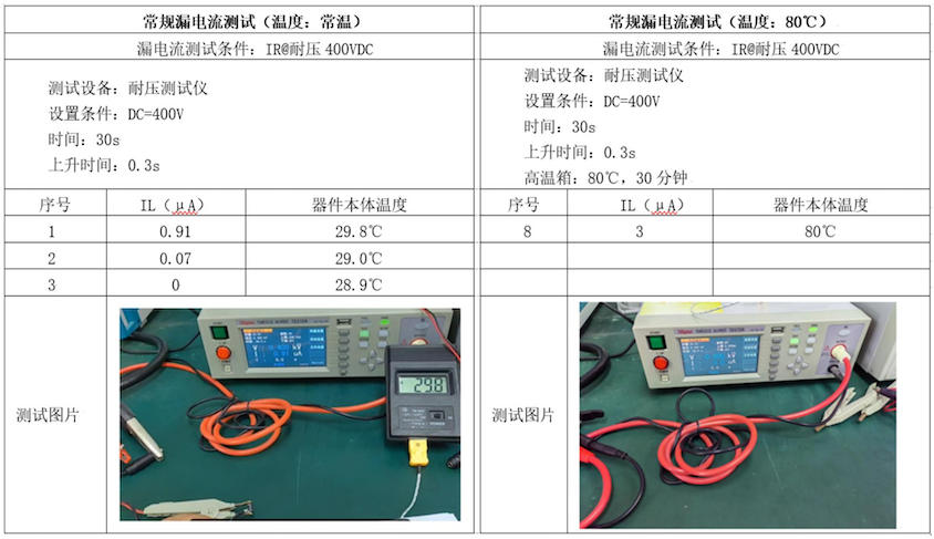 對于汽車電子12VDC的電源來說,都有24VDC的耐壓測試,具體耐壓需要多少時間,需要客戶跟供應商協商, 國外某知名廠商P的規格書里,這個耐壓的數字是24VDC,時間是5分鐘; 我們在常溫下測試,P公司是可以通過5分鐘耐壓測試的,考慮到汽車的內部環境溫度會到80度或者更高,所以對于耐壓測試,不考慮殘壓的情況下,是越高越好,測試的結果表明,P公司的可以通過規格書的要求,1mA擊穿電壓不到22V,電流已經超過了3mA, 產品的表面溫度比較高。國內廠家B,在同樣測試條件下,擊穿電壓超過25VDC,在24VDC下的漏電流小于1mA,產品的表面完全不發熱,耐壓性能穩定。
